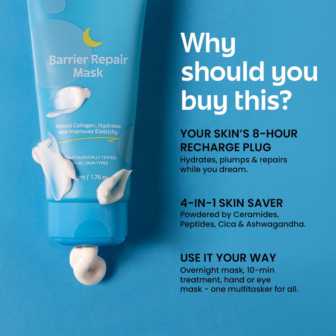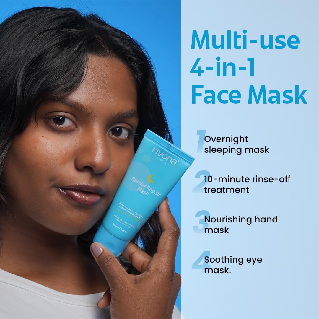 Rivona Naturals Barrier Repair Hydrating Mask 4-in-1, Leave on Overnight Mask Pack with Ceramides & Peptides, Boosts collagen, gives Glass skin, use as eye and hand mask | Suitable for Men and Women | All skin types 50gm