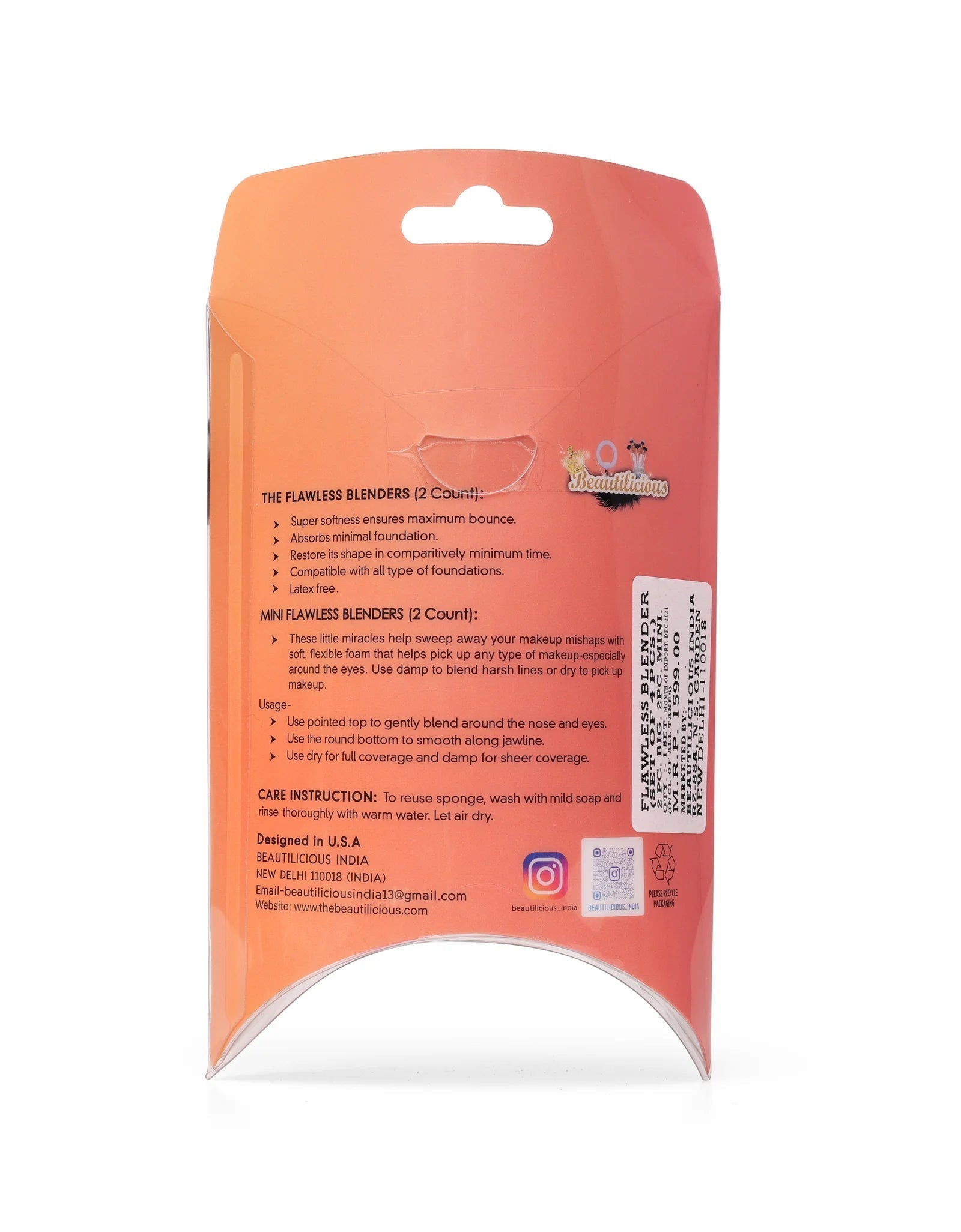 We understand that skincare is a top priority. That's why the BEAUTILICIOUS Flawless Blender is crafted with latex-free materials, making it suitable for even the most sensitive skin types. Say goodbye to irritation and hello to a comfortable and enjoyable makeup application experience.
