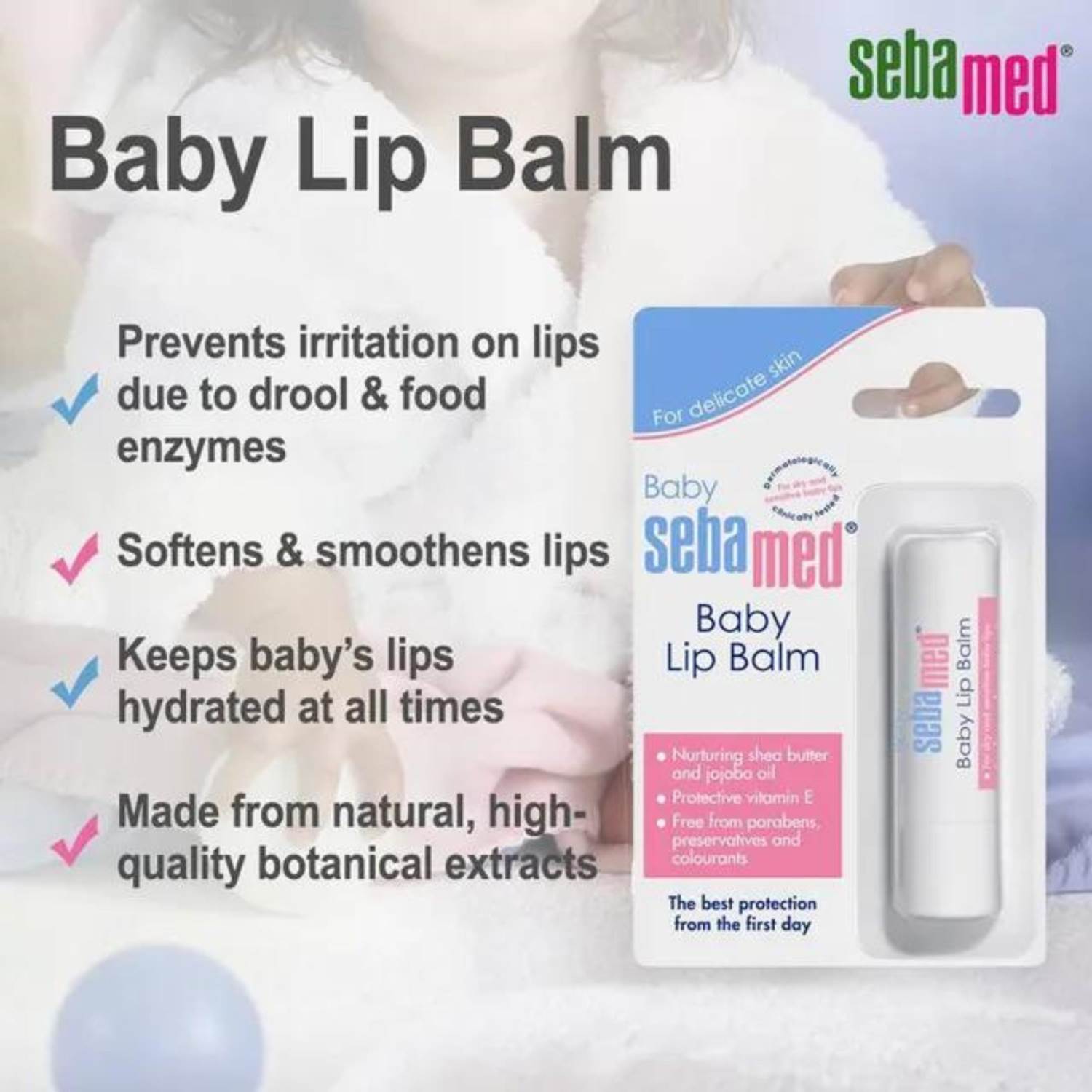 Baby lip balm can be applied with out irritation even when lips are sore